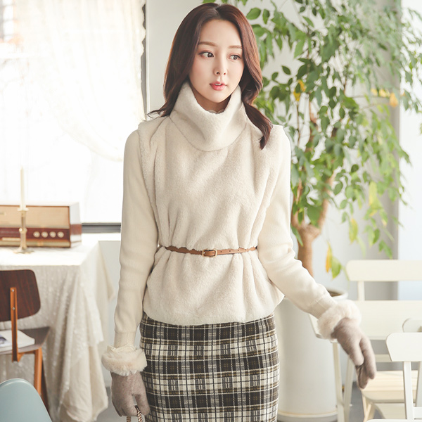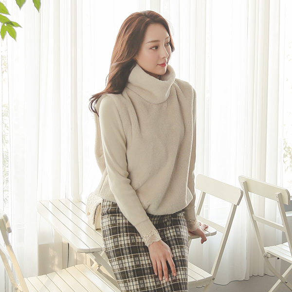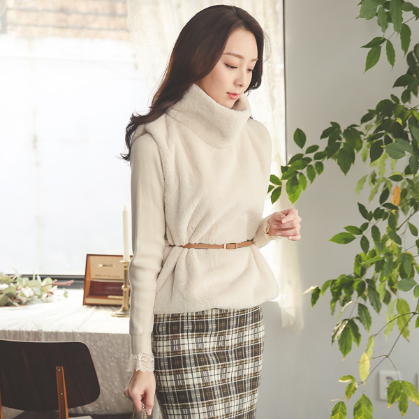 Eco 貂皮毛 里面松紧带 高龄 马甲