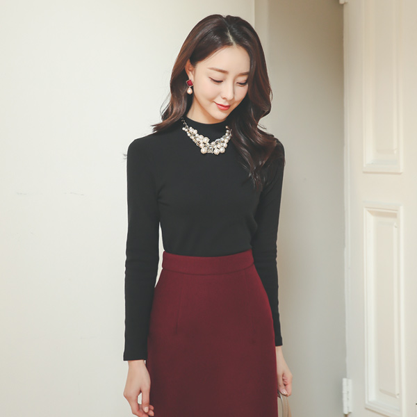 棉 桃皮拉绒 半高领 弹力 T恤衫