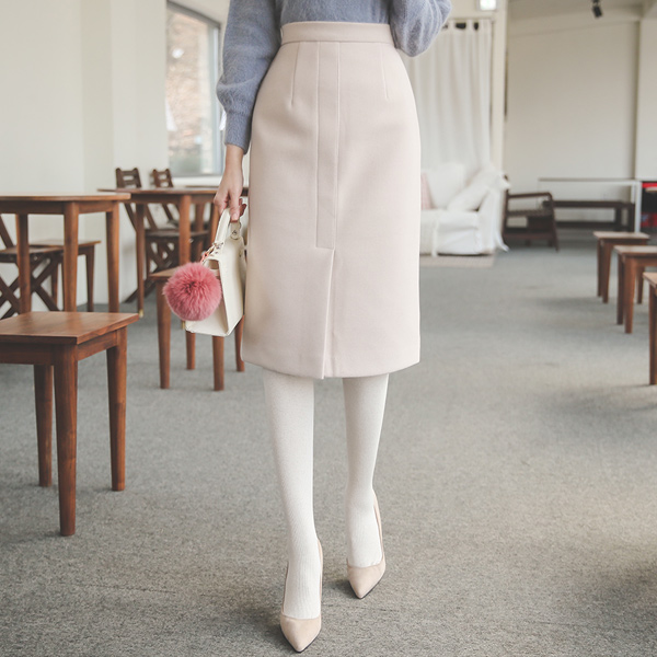 Creamy 开叉 开衩 羊毛 中长款裙