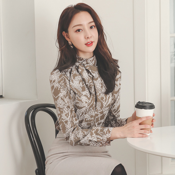 褶裥领 Leopard 领带 罩衫