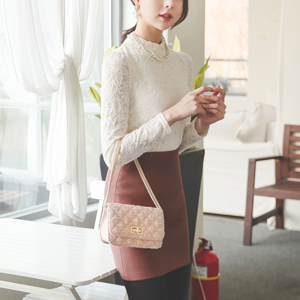 珍珠 刺绣领子 拉绒 蕾丝 罩衫