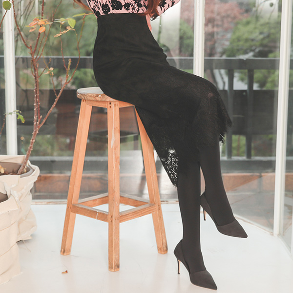 蕾丝 花边 翻毛皮 弹力 中长款裙