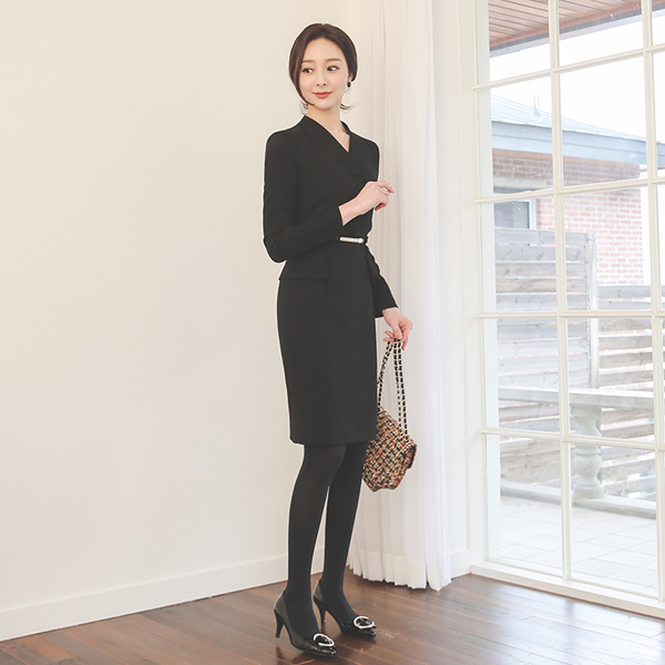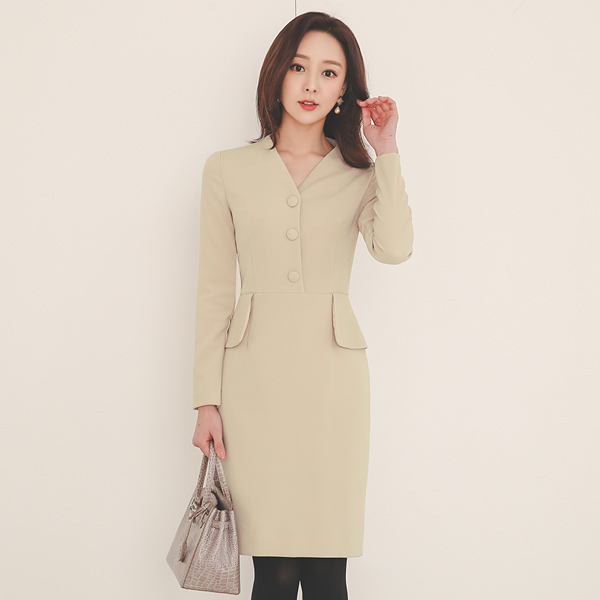 三个 扣子 荷叶边 H字型 摩登 连衣裙