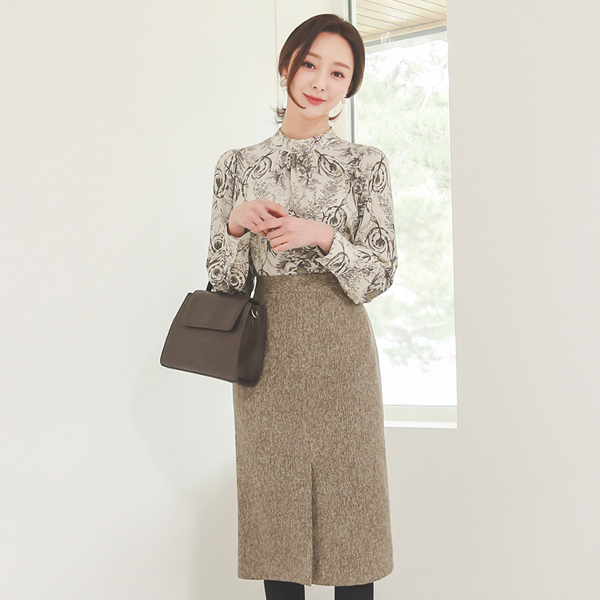 高腰 渲染 开衩线条 中长 裙子