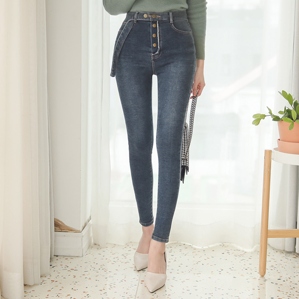 扣子 束带 灰 水洗 拉绒 紧身裤