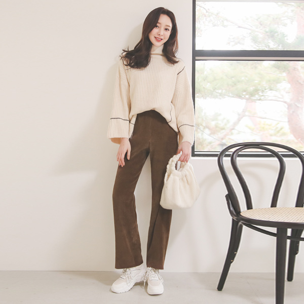 灯芯绒 宽松 松紧带 裤子