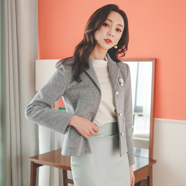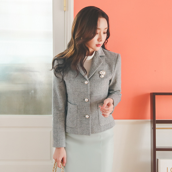 古典 黑白格子 珍珠扣 校风 夹克