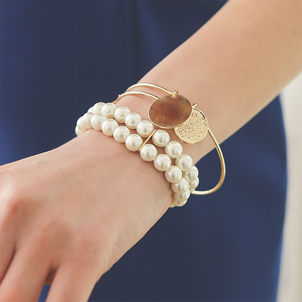 硬币 垂饰 黄金&珍珠 镯子