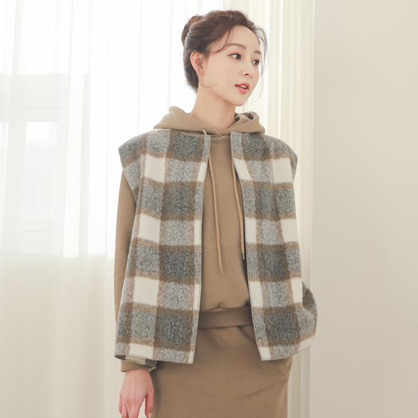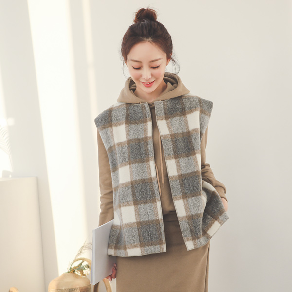 柔丝 羊毛 格子 配色 裁剪 马甲