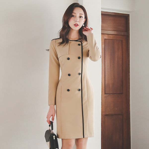 斜纹 绷带 双排扣 Gun Flap 连衣裙