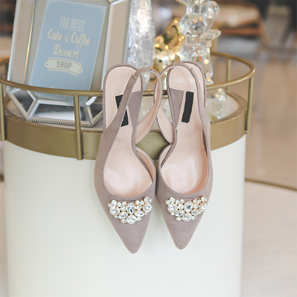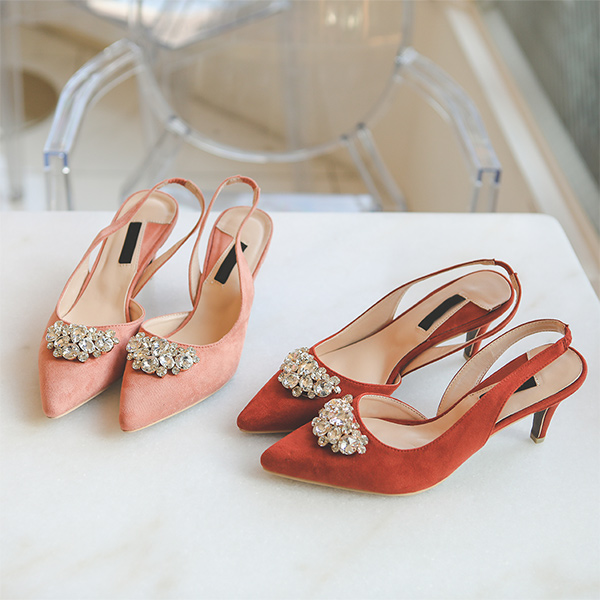 翻毛皮 镶钻 露脚后跟鞋 高跟鞋
