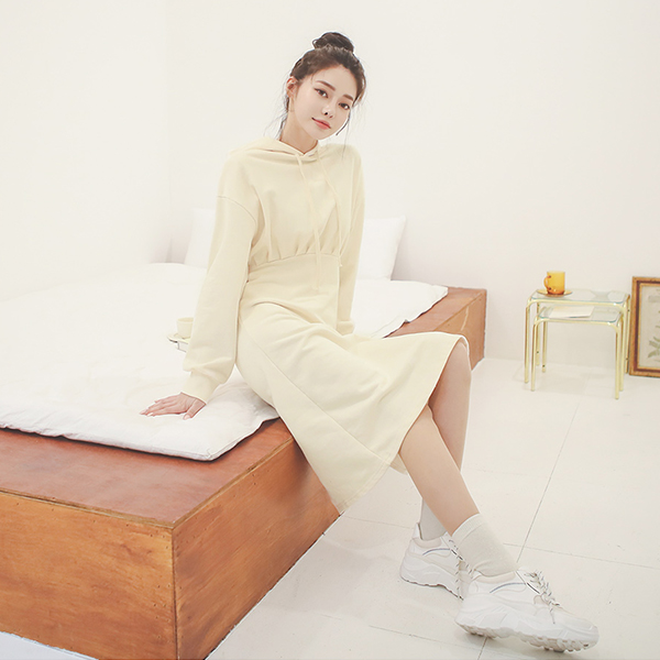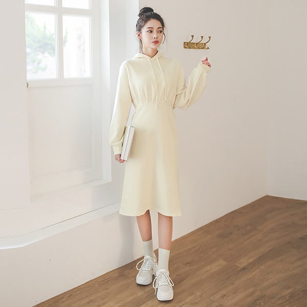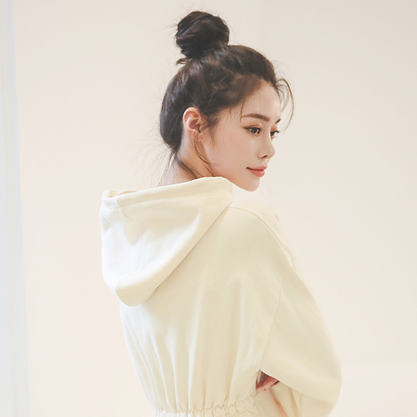 混棉纺 后侧松紧带 后开叉 运动服 带帽 连衣裙