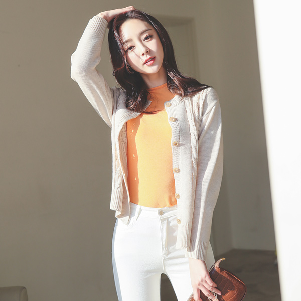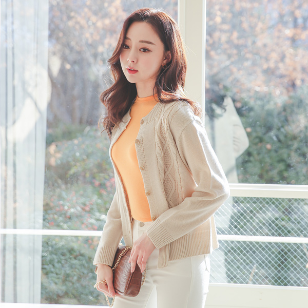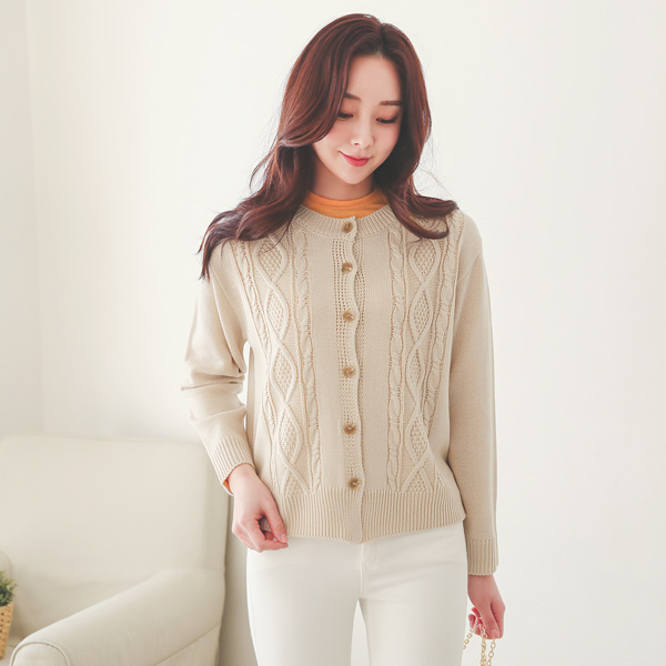古典 麻花 圆领 开衫