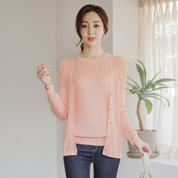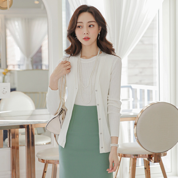 银色扣子 条绒 V字领 针织衫 开衫