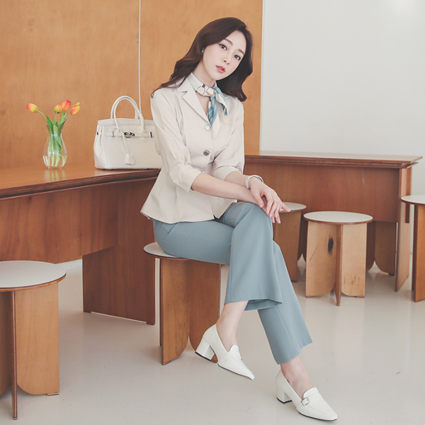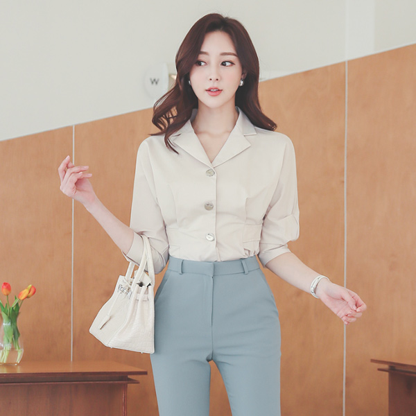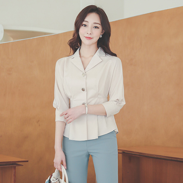领子衬衫 金色纽扣 细褶 罩衫(spring)