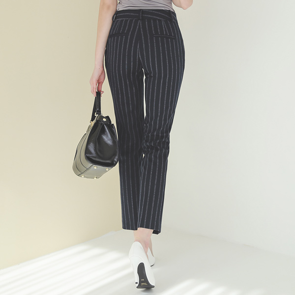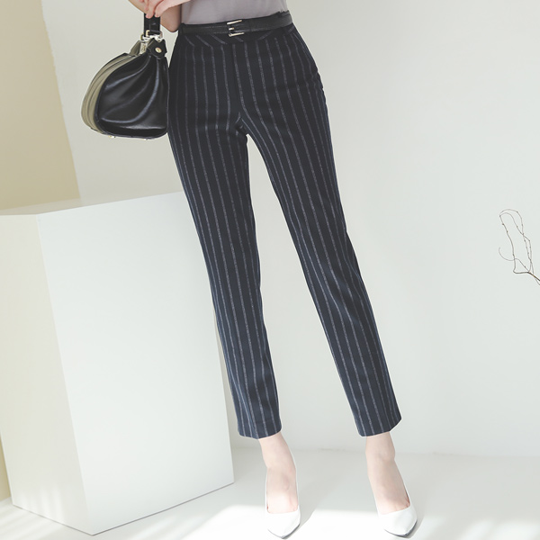 条纹 古风扣 弹力 宽松长裤