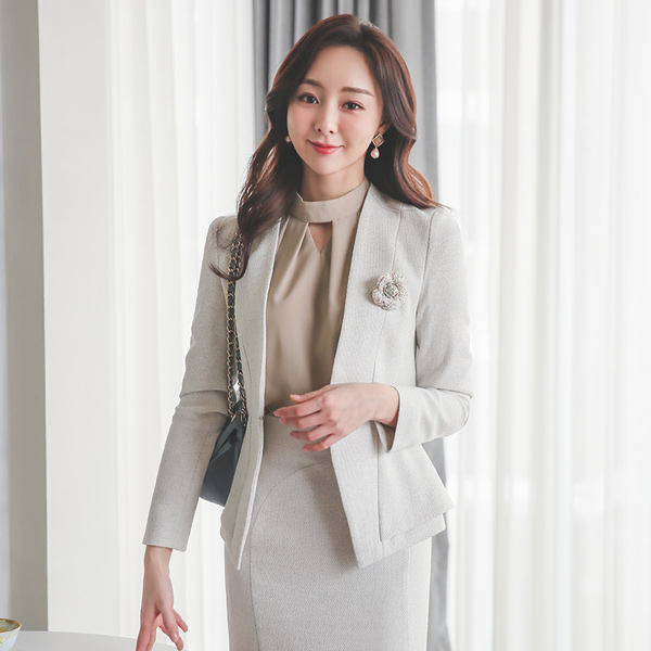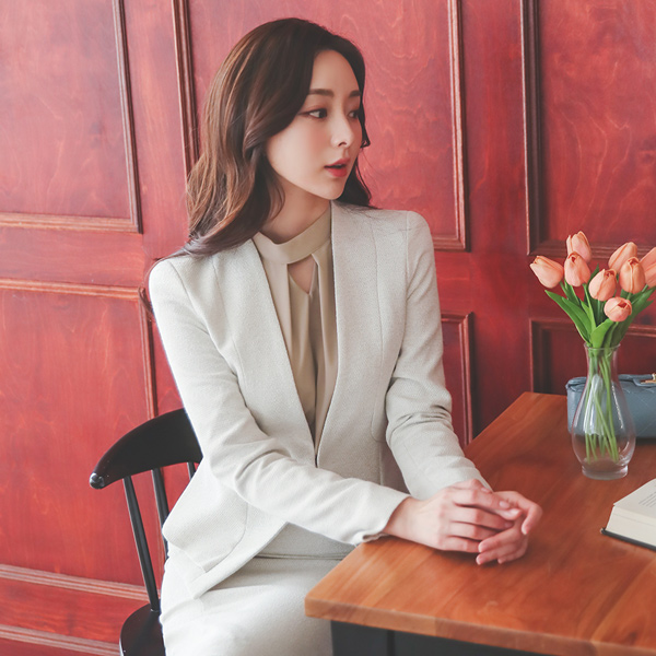 高档 无领 开叉线条 고방 夹克