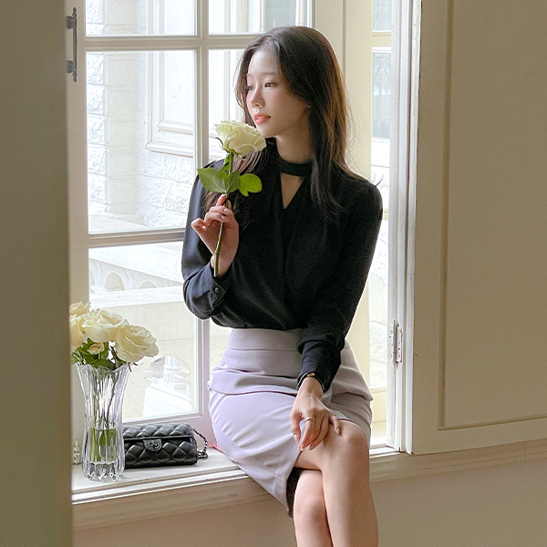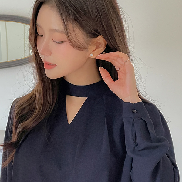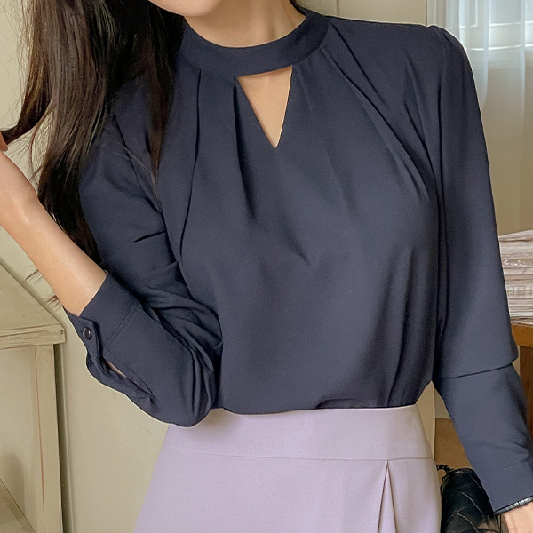 颈链领 华丽 细褶 罩衫