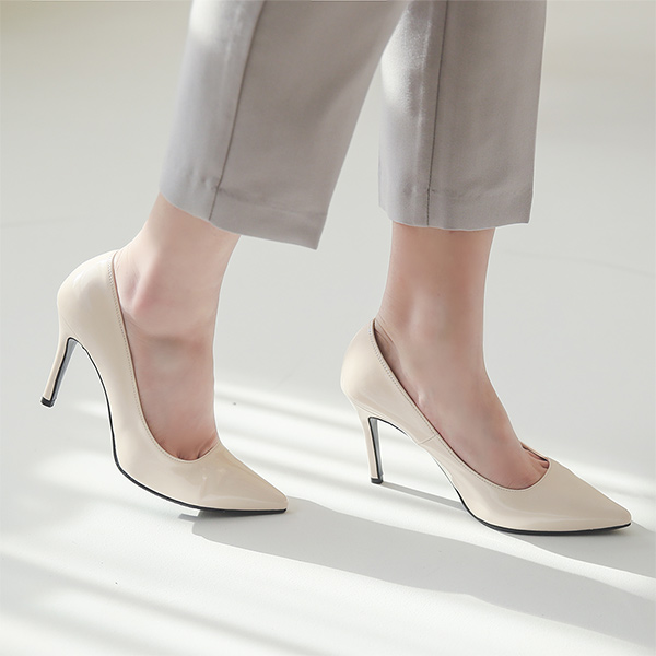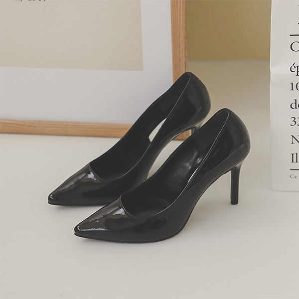 漆皮 修身 开叉 缝线 尖头高跟鞋