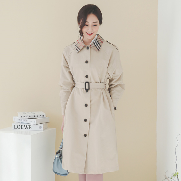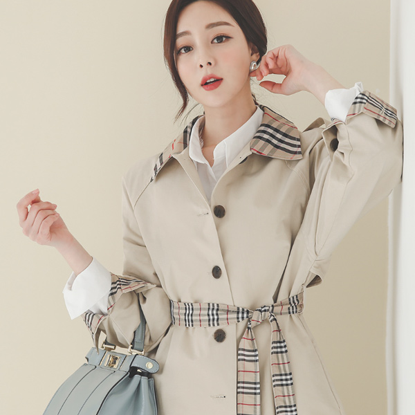 复古 格子 配色 单个 棉 双排扣雨衣