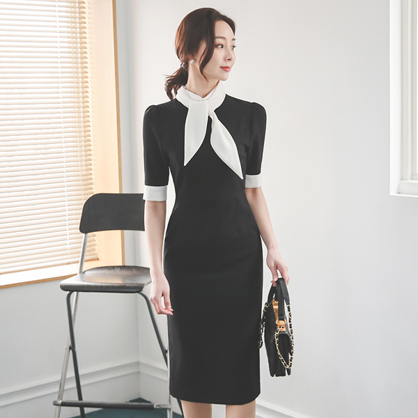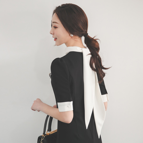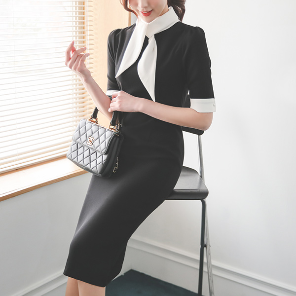 围巾 配色 H字型 Black 连衣裙