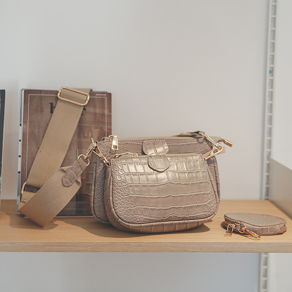 鳄鱼纹 多色 3pcs 交叉 包