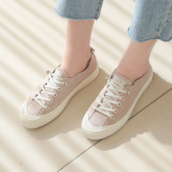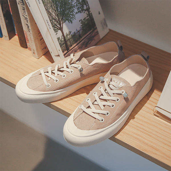 真 牛皮 弹力 밴딩끈 胶底帆布鞋