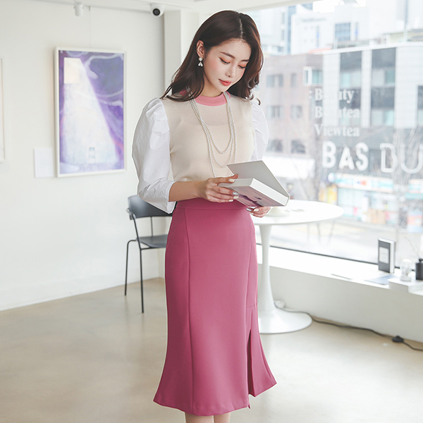 圆领 配色 泡泡袖 分层 针织t恤