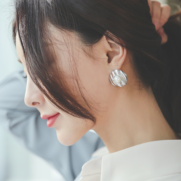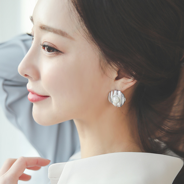 高贵 Silver 珍珠 环 耳环