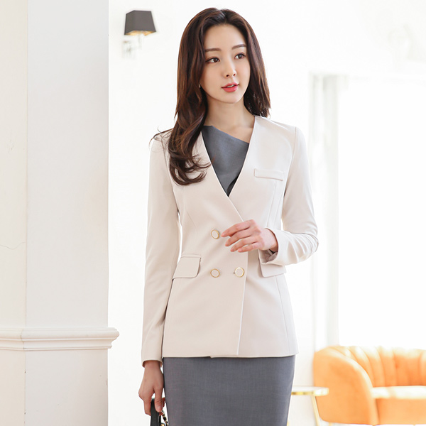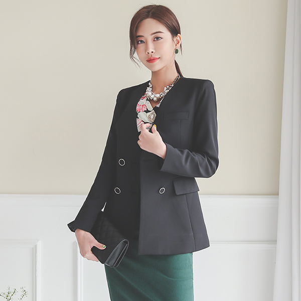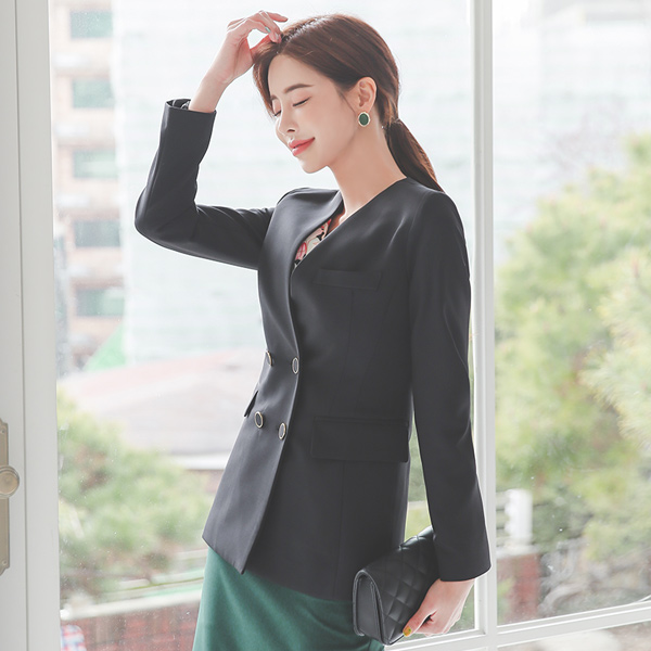 黄金环 双排扣 无领 修身 夹克