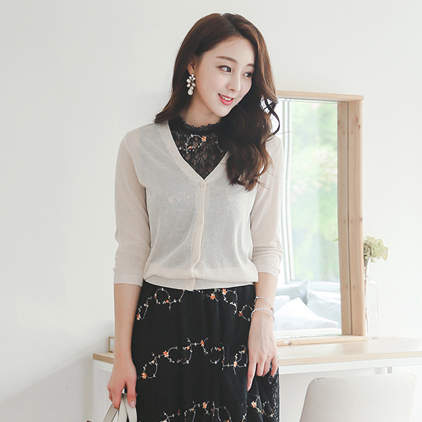 [刮痕产品]叶子 缂丝 V字领 开衫