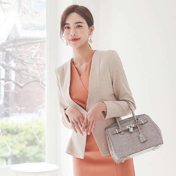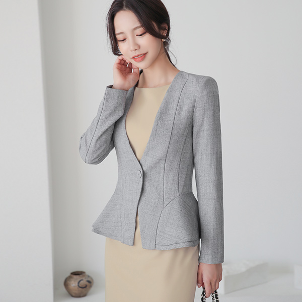 波浪卷 二重 荷叶边 无领 修身 夹克