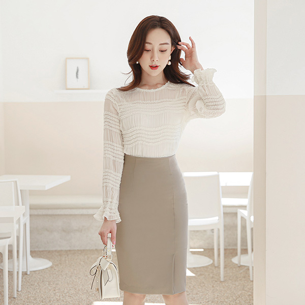 淑女 高腰 开衩 裙子(spring)