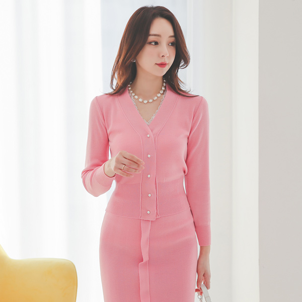 迷你 珍珠 V字领 针织衫 开衫