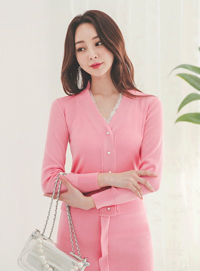 迷你 珍珠 V字领 针织衫 开衫