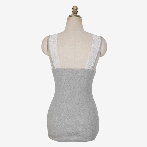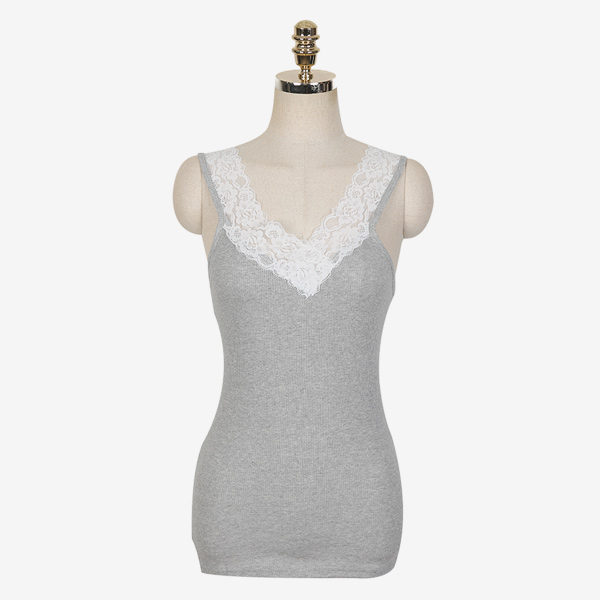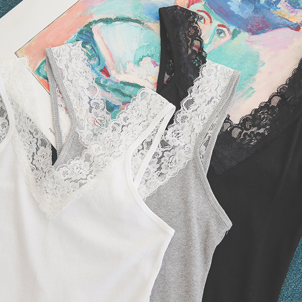 蕾丝 V字领 分层 条绒 内搭 背心T恤