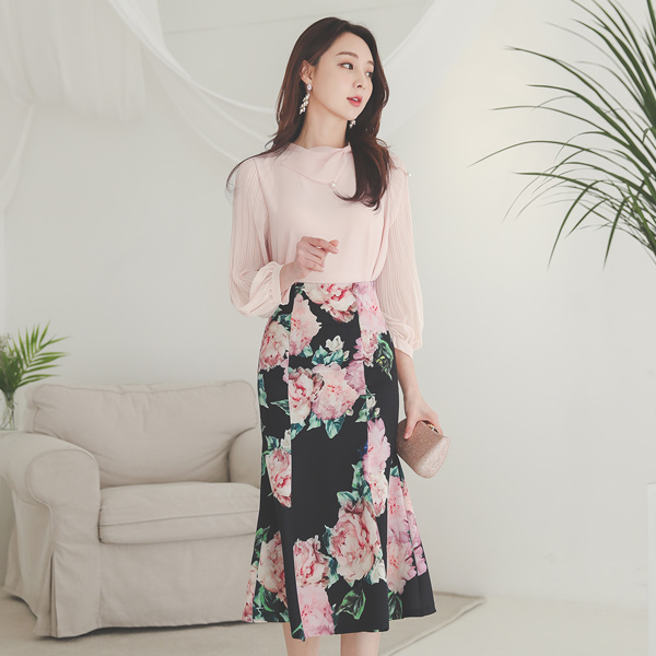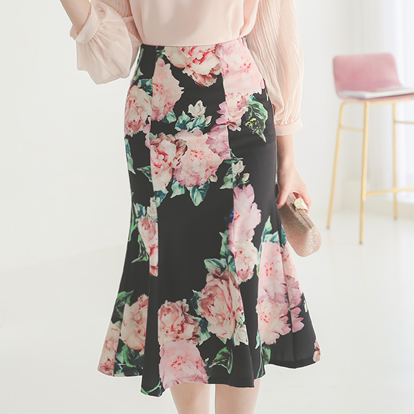 玫瑰图案 开叉 美人鱼 裙子 Ⅱ