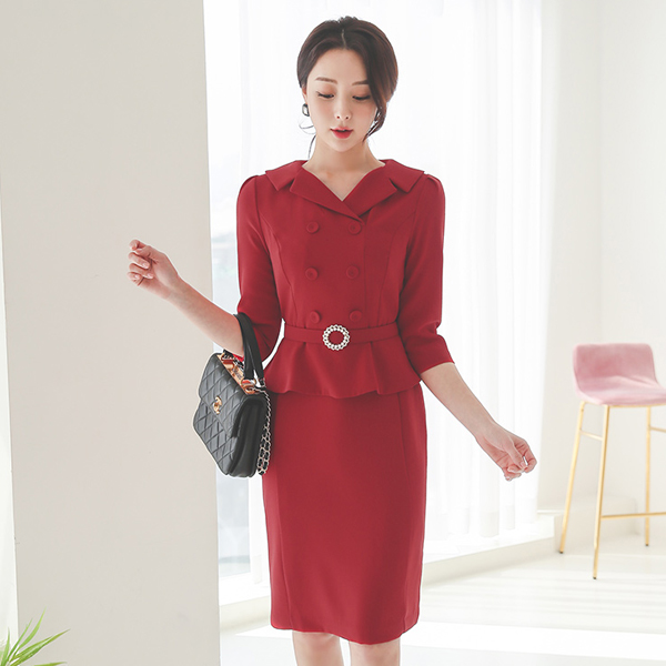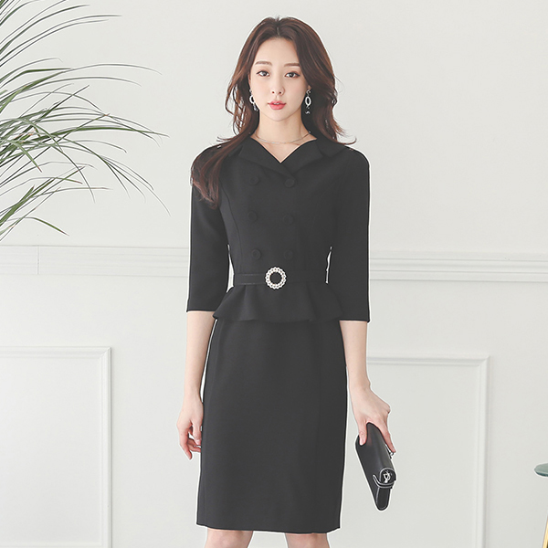 平领 珍珠 束带 荷叶边 H字型 连衣裙