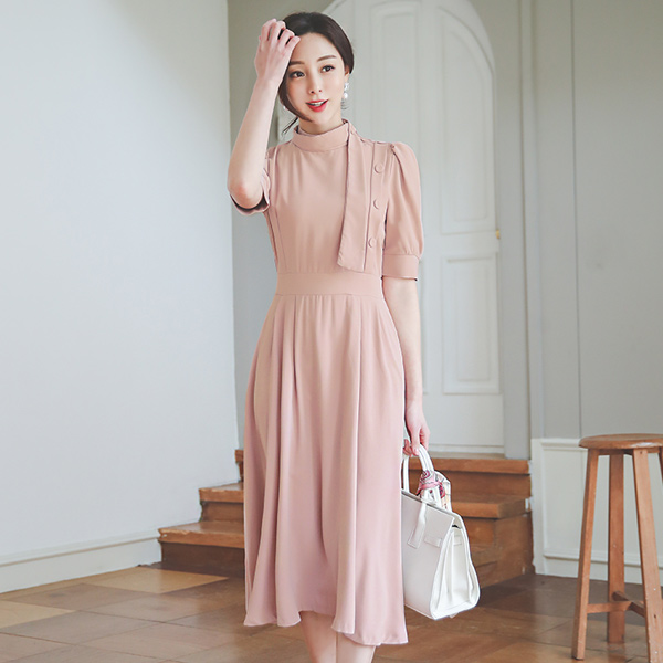 高龄 围巾 反向 褶边 连衣裙