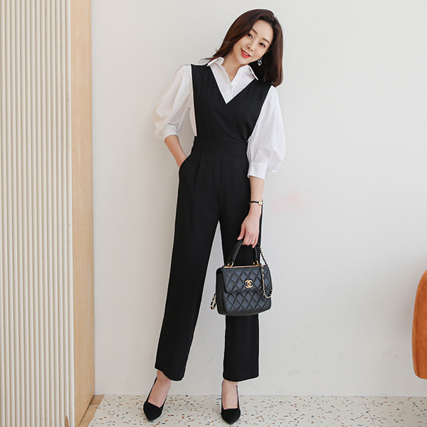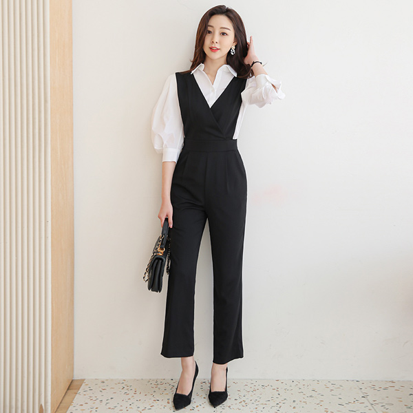 Black V字领 背心/打底衫 宽松 连体裤