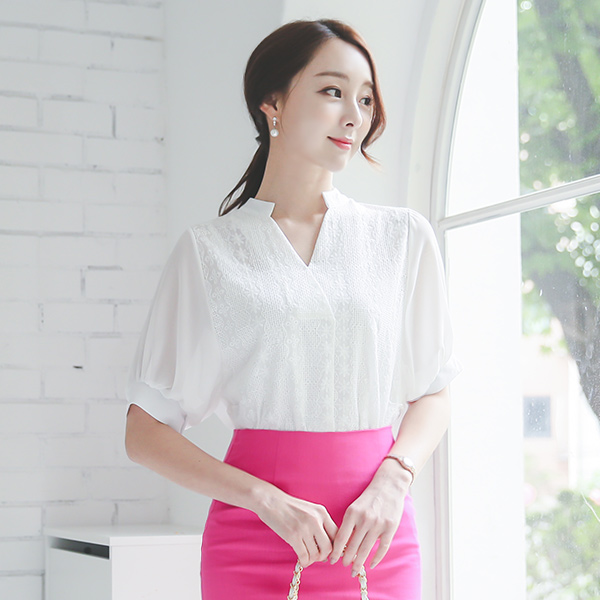 [刮痕产品]雪纺 袖子 印花 罩衫