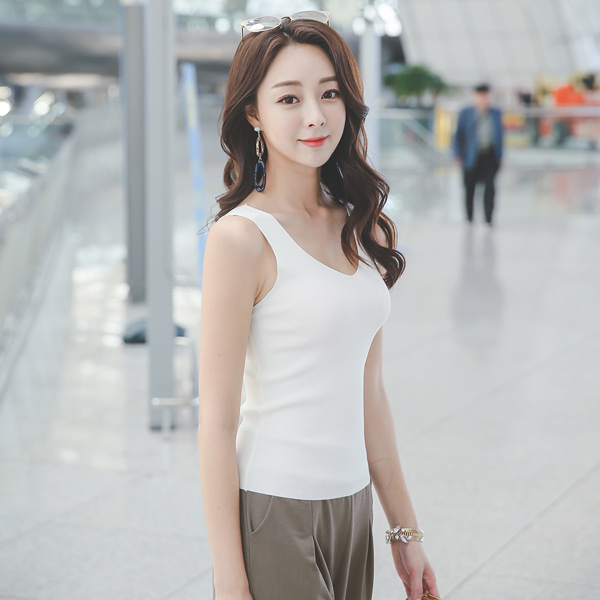 [刮痕产品]简单 V字领 无袖 针织衫