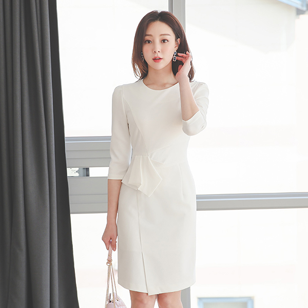 品齐褶皱 不规则 褶边 开叉 弹力 连衣裙