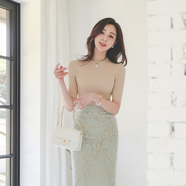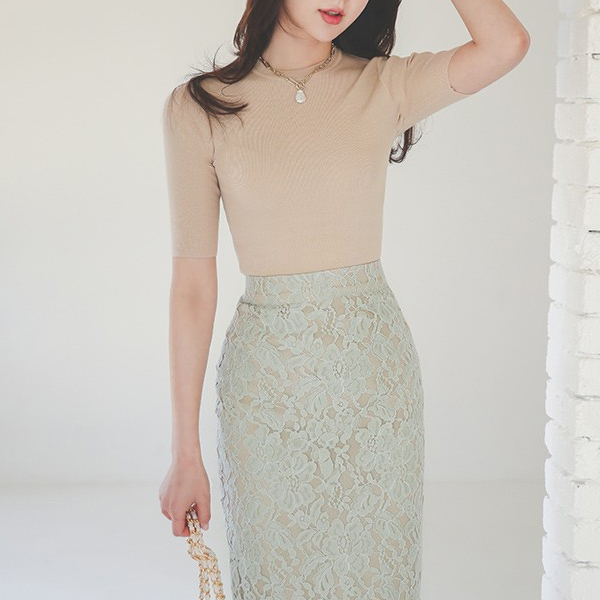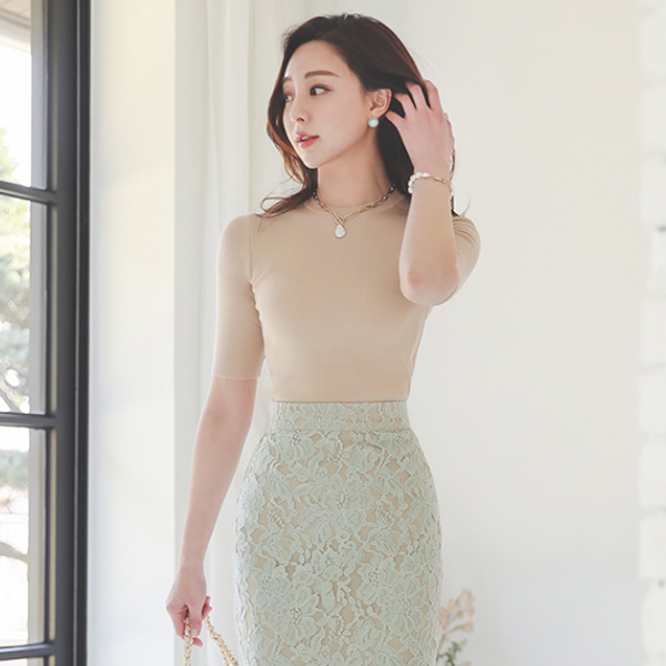 May 基本 5分袖 圆领 修身 针织t恤