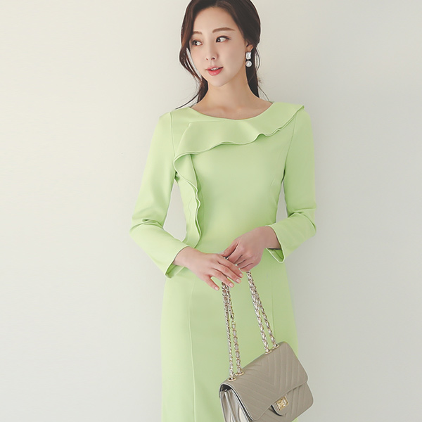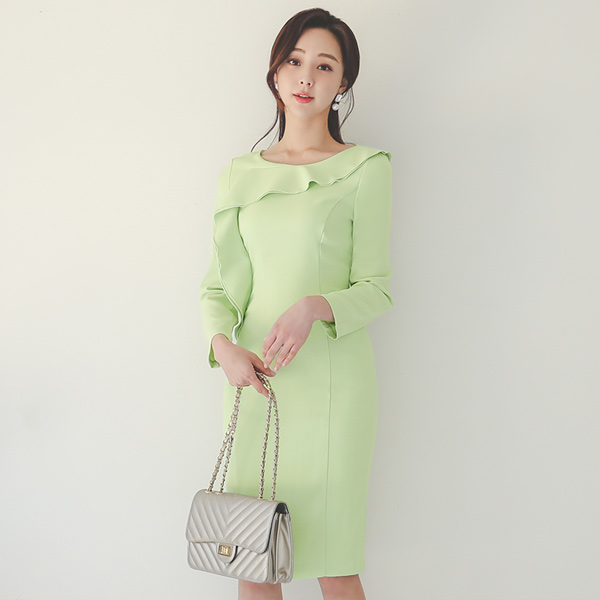 圆形 不规则 荷叶边线条 开叉 修身 连衣裙