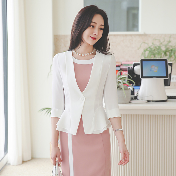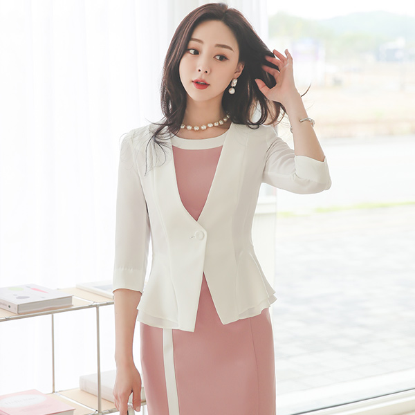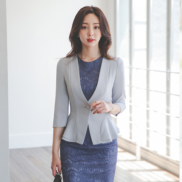 无领 单扣 7分袖 二重 荷叶边 夹克