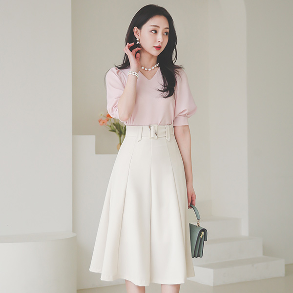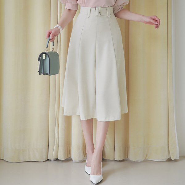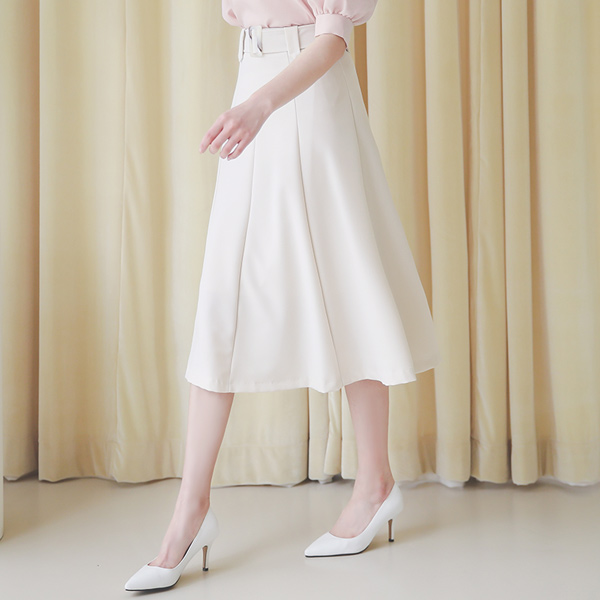 方形 束带 细褶 喇叭 裙子