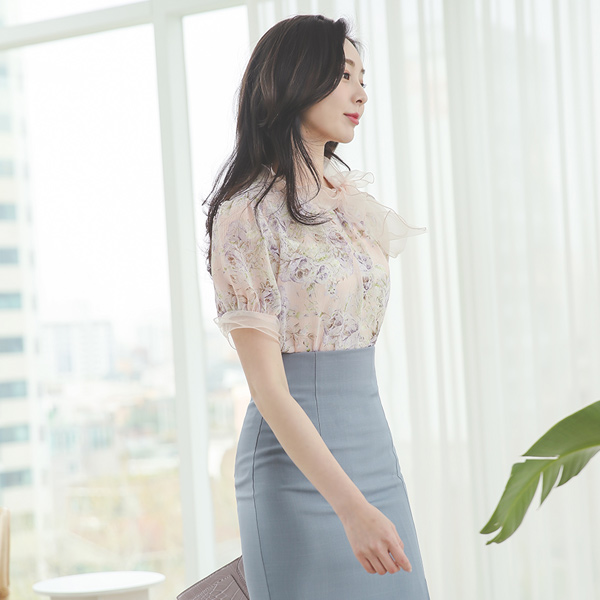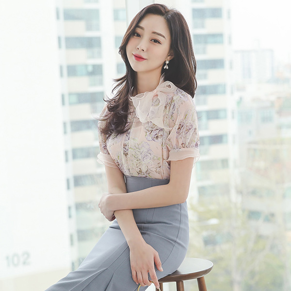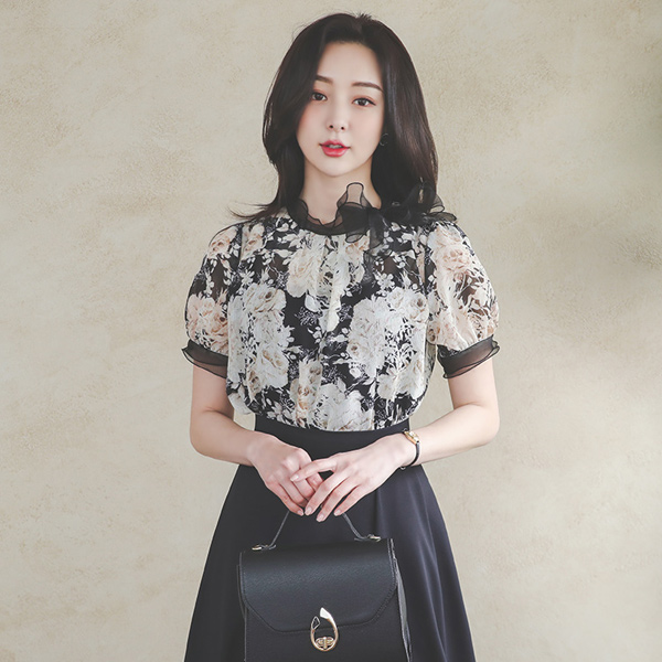 透明硬纱 蝴蝶结 透视 花纹 罩衫