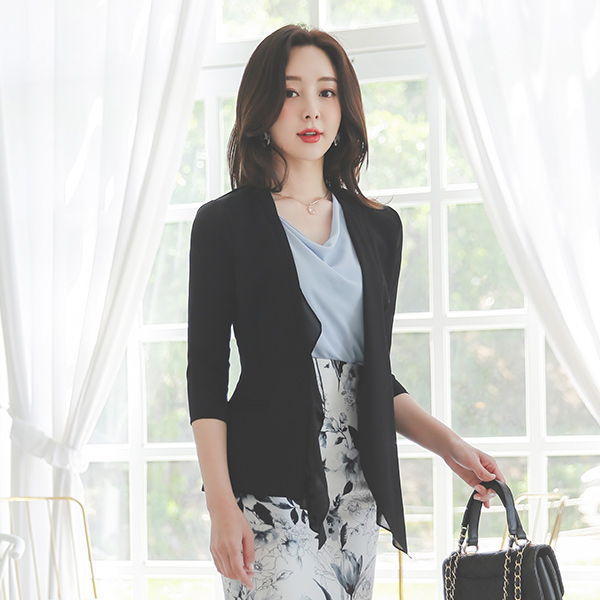 夏天 雪纺 围巾 修身 无领 夹克