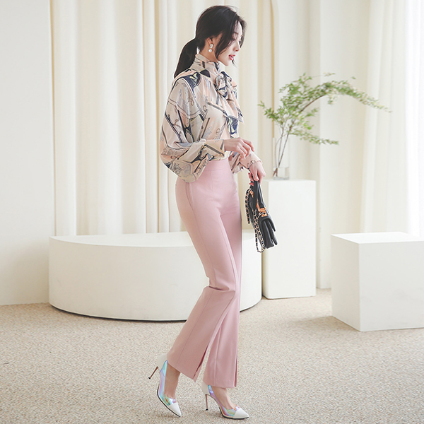 腰头线条 开叉 前面 开衩 一字型 宽松长裤